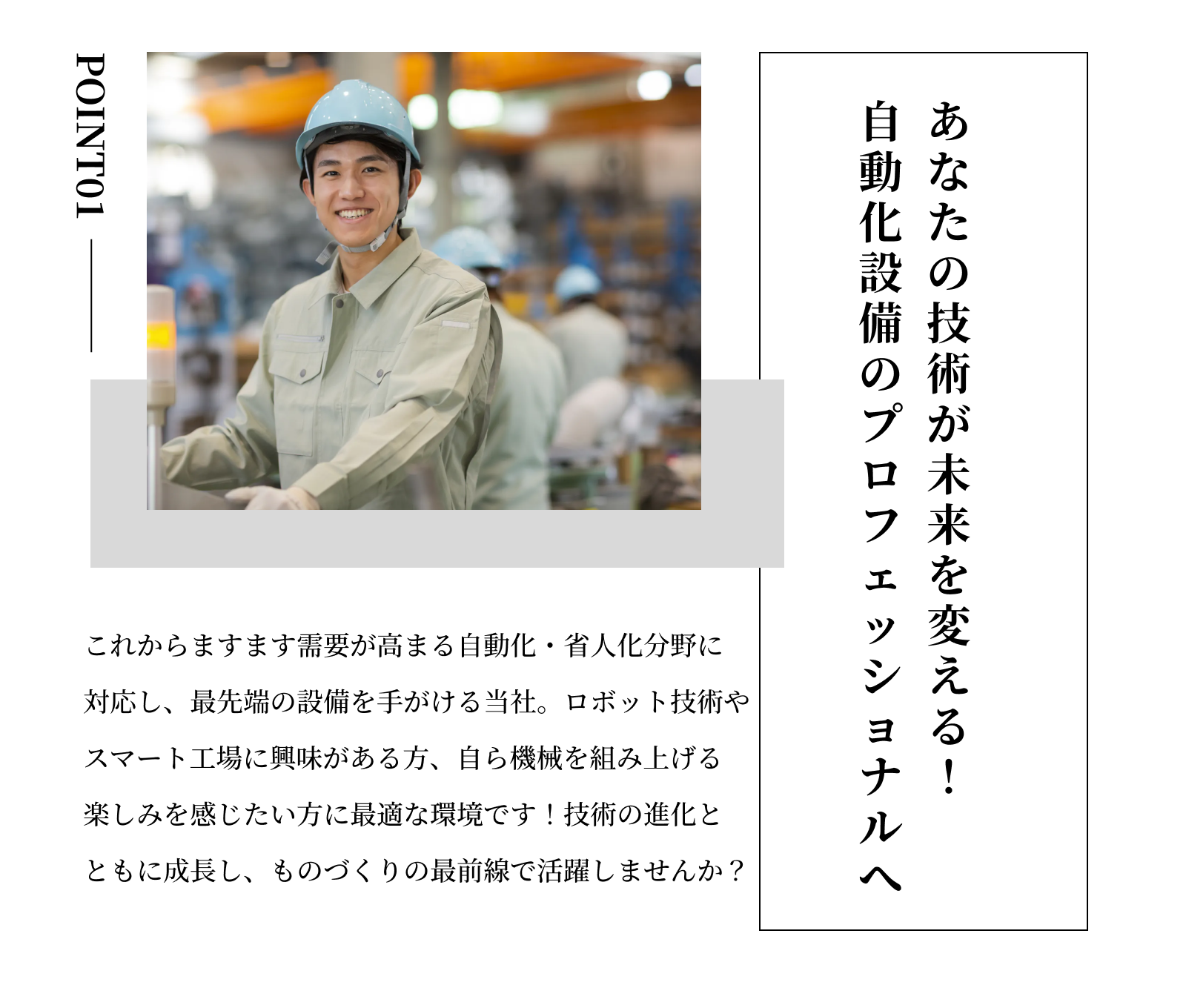 | 事業内容 | 設備製造業・省人化設備・自動搬送設備・電装設計・製缶 |